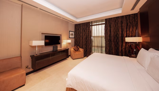 It's only a 15.5-kilometer drive to the hotel. Take F Ring Rd, turn right on Al Matar Street, then turn left on C Ring Road. Turn right on Salwa Road and you'll see our hotel on your right.